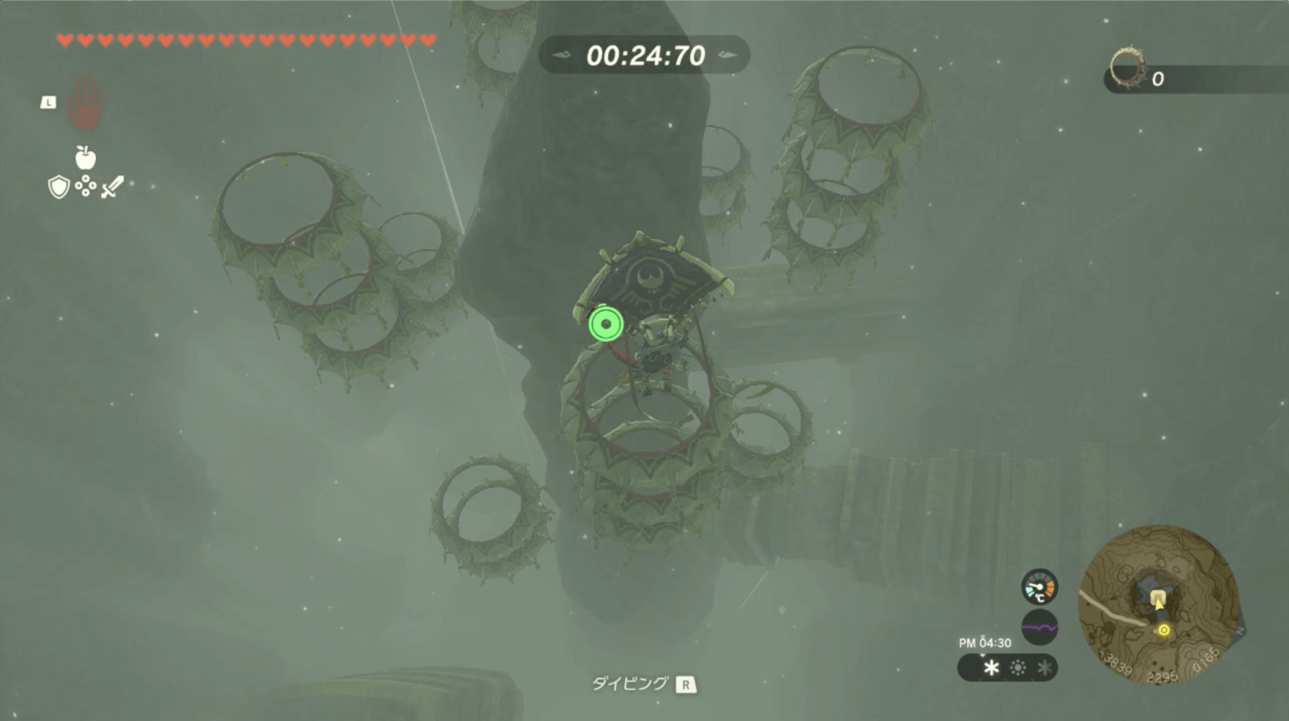 飛行訓練が始まったら、パラセールとダイビングを繰り返して、30秒以内にリングを15個以上くぐろう。なお、リングの縁付近をかすめれば問題ないため、リングの真上からダイビングしなくても良い。