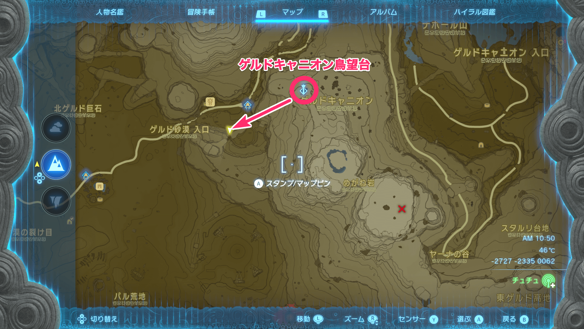 ゲルドキャニオン鳥望台を解放しておく