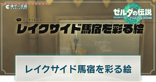 ゼルダの伝説ティアーズオブザキングダム(ティアキン/totk)のチャレンジ「レイクサイド馬宿を彩る絵」を掲載。発生条件や場所などについても紹介しています。