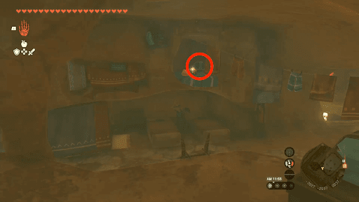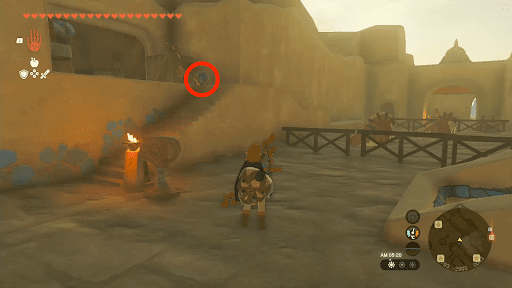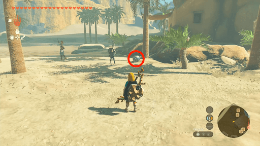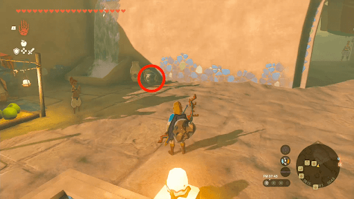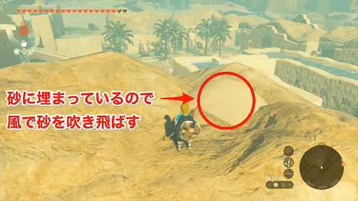 7つ目の珠は、ゲルドの街の東側の壁の上にある。特別な条件などはないが、砂に埋まっているので扇風機やコログのうちわなどで風を起こして、砂から取り出して持っていこう。